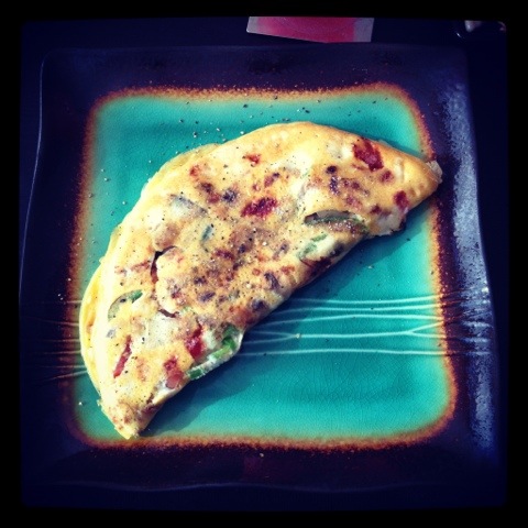 Boyfriend just made me this perfect omelette, filled with leftover meats ad veggies from last nights pizza making party. It was so perfect looking, I almost didn’t want to eat it.