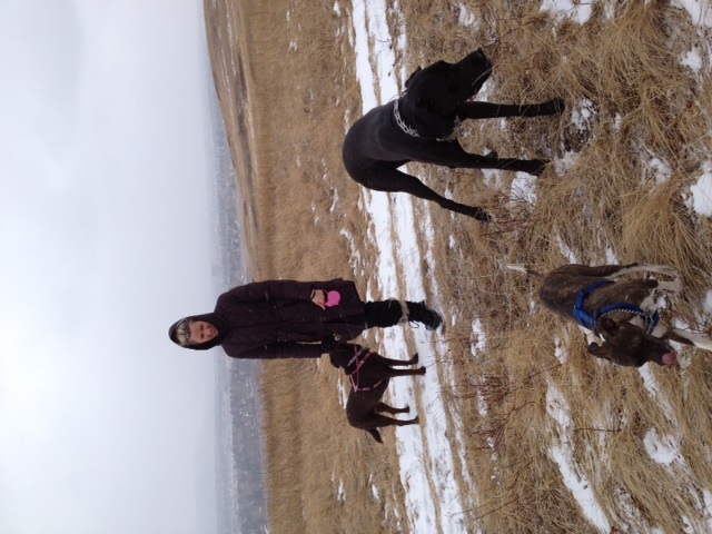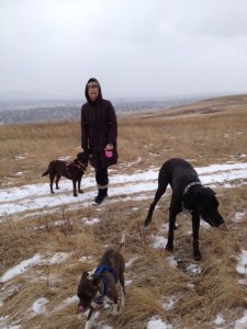 Immediately after tea, Twyla and I took all three pups to Nose Hill for a walk. I tried to take some pictures, but it was a tad overcast, so you can’t see much. But I will post them regardless