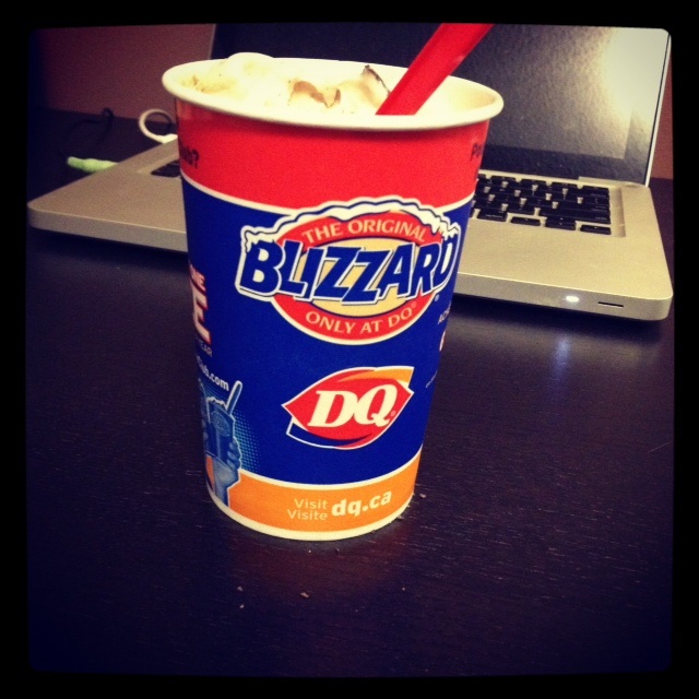Last night, I had a meltdown. A what the hell is happening with my life type of meltdown. I just lost motivation to go to the gym, didn’t want to get out of bed, socialize…..NOTHING. So of course, when Tyler got home I started bawling my eyes out. I got snotty. I know now that Tyler really REALLY loves because he wiped my snot WITH HIS BARE HAND. I shudder at the thought. After the crying conundrum, Tyler and I went to DQ where I picked up this bad boy: