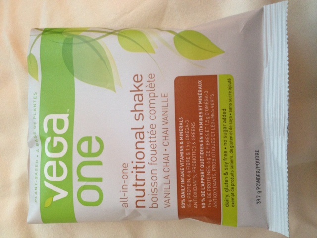 The Vega One was a single serving pack- I am still debating whether I want to indulge myself in a full canister. It’s so expensive! But there is SO MUCH protein in it, and it’s good, and I like it and I could have it everyday…