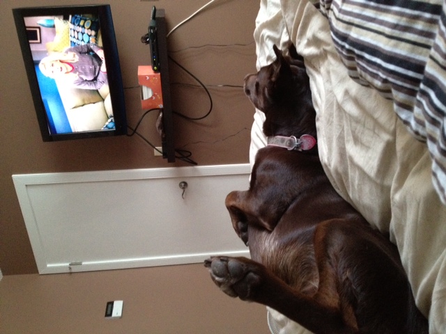 Watching TV upside down! (Well, I don’t suppose she has to watch it upside down, but still)