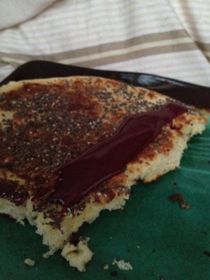 To summarize, today I had a chia pancake with blueberry raw honey for brekky