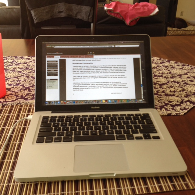Then, it was homework time. If you didn’t know, I am STILL in grad school. I started a year after undergrad, but I was so busy with my full-time job, teaching at the Y, studying for my ACSM certified personal trainer exam, traveling, and LIFE that I am finally on my 3rd to last class. I decided to take my last elective (or as I like to call them: fun) class during the summer, so that come fall/winter, I will be miserable indoors not only because of the weather, but because I will be finishing up with Managerial Economics and Operations Management (as if I didn’t suffer through them already in undergrad! woof). Then: Masters Degree.