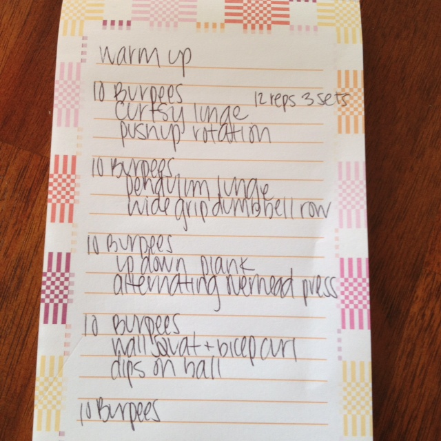 I started yesterday’s workout with about 10 minutes of kickboxing, then I did Tina’s Burpee Blaster workout.