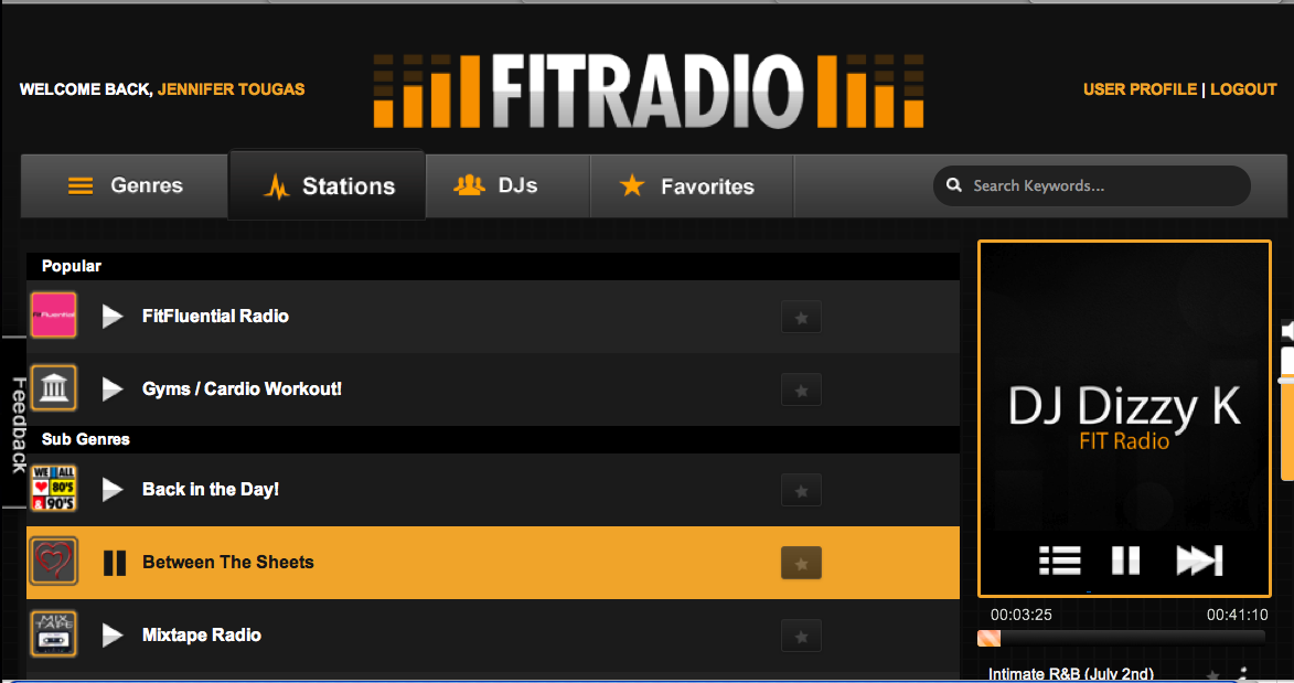 For my entire sweaty session, I listened to the FitFluential Radio Station on FitRadio. If you’ve never heard of FitRadio, I really encourage you to check it out. For my entire 60 minute workout, a continuous remix played and I loved every single minute. In fact, they even have remixes to music that’s not geared towards workouts. Right now I’m listening to the Between the Sheets station (it’s great, but I can’t help but giggle. Doing ‘it’ to remixed slow jams just seems like a bad Lifetime movie to me).