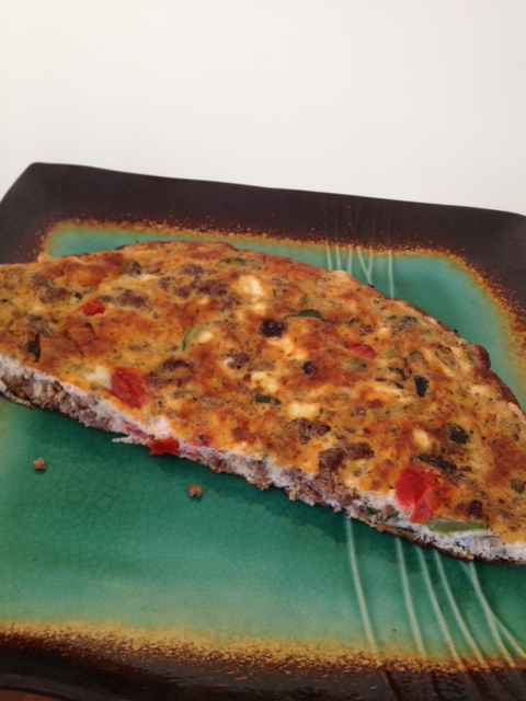 Dinner: FRITTATA! I searched around the internet for a recipe, and ended up concocting my own (to make do with what was in the fridge)
