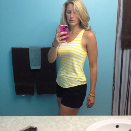 Yesterday, I wore real clothes. Like, no trace of Lululemon was on my body. I don’t know what possessed me. (Ok, that’s a lie. I went to the gym first thing in the morning, so I had to wear some Lulu. And if you’re wondering, my workout was treadmill intervals for 35 minutes followed by another 30 minutes of lower body and core exercises using the bosu and a body bar.)