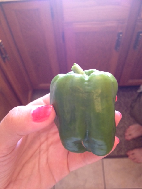We came home, and decided it was time to pick the first pepper from out patio garden.