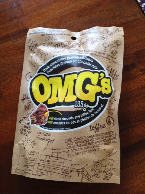 Ok. WHY have this not been in my life until now? When I first opened the package, I laughed when I saw these, and actually said “OMG”….and then I ate them and REALLY said OMG. Graham crackers with almonds and toffee bits covered in chocolate? My dream. Tyler only got one. I pretty much inhaled the rest. Then had to do an hour of kickboxing to displace any guilt. 😉