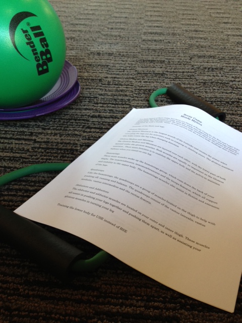 The purpose of this session wasn’t for OUR workout. It was to educate us on how to target muscles in our lower half that we don’t normally target. Ladies have strong quads, men have great butts. She had us using the bender ball for exercises that would really get those hamstrings and glutes so that we could have awesome man-butts. (Yes there were men in the class, and she praised them for their behinds. She also made a joke right off the bat- as we were squeezing the ball between our thighs- that men have great butts because they’re always carrying their balls around, so we should do the same.)