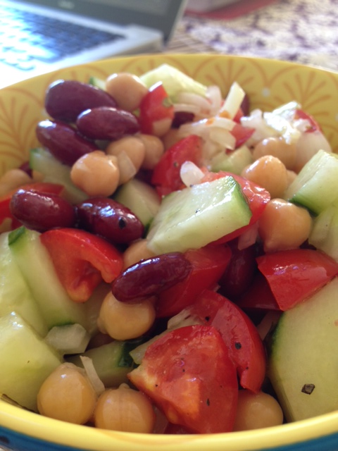 Oh, and tabatas. We did a tabata of jumps. Just JUMPS. And I died. She had us put the balls on the ground in front of us (not really to use, but as a point of reference to GET LOW on every jump). The first two rounds were squat jumps, 3&4 were staggered on the right, 5&6 staggered on the left, 7&8 back to jump squats. I was ready for a nap, but I had about 4.5 hours of exercise to go for the day.
