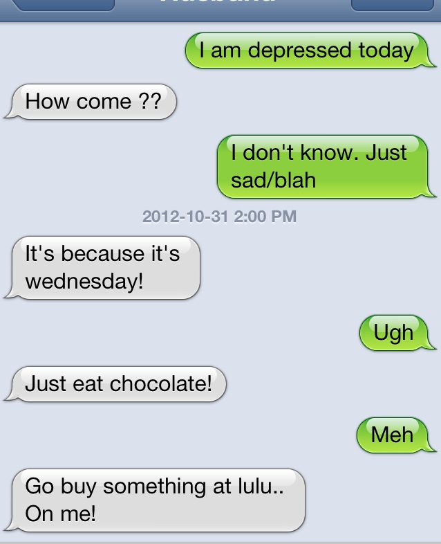 Yup. He basically TOLD me to go buy Lulu! I originally planned to swing by the mall after teaching my class, but I was sweaty and it was cold, so I am going as soon as I finish this post! :):):):):)
