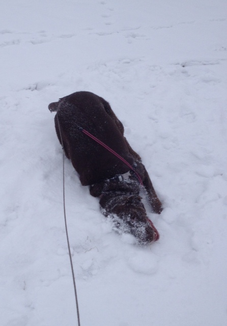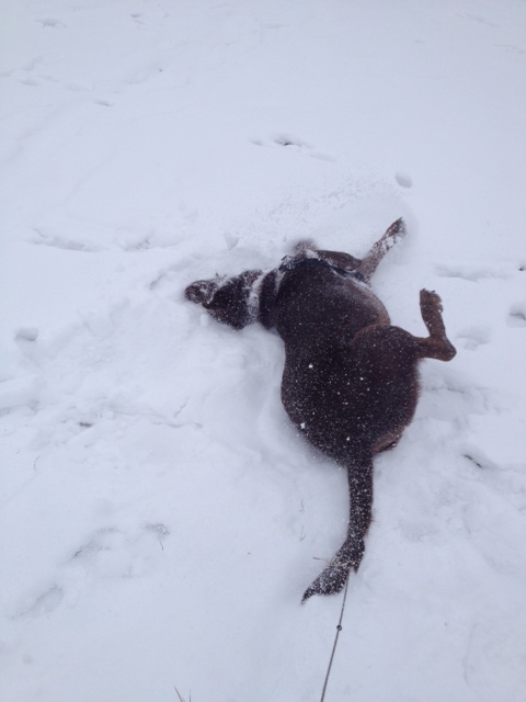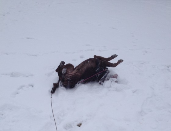 OMG I Love your dog!!! Cruz does the same in the snow! Plows her nose it in, rolls around – loves it!! That last photo is hilarious too!
