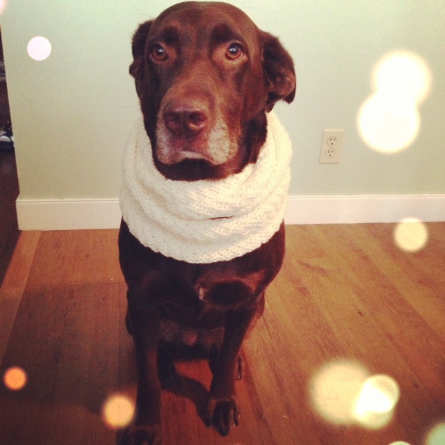 I was crafting for a bit (still not done) in the afternoon, and Layla took it upon herself to wear my scarf. I think she rocked it.