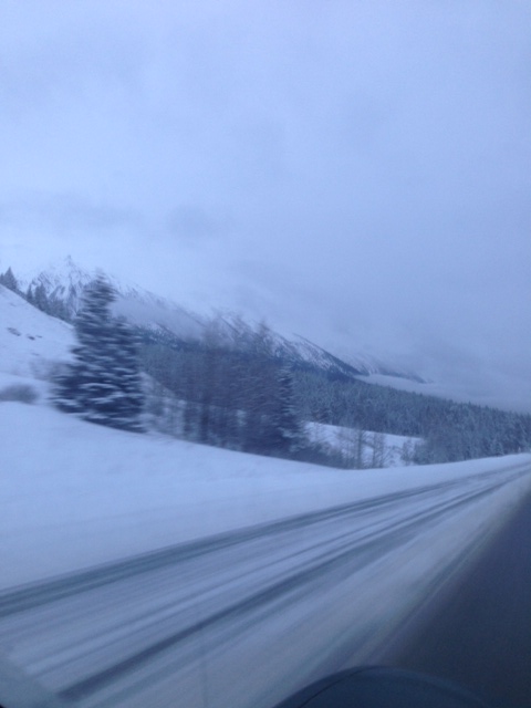 When I left, it was nice and sunny. Most of the snow had melted. But as I got further into the mountains, snow snow SNOW.