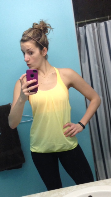 Today’s workout was Workout B from BBB and it was killer- a real upper body blaster! I was super pumped throughout the workout though because I wore my brand new Lululemon top! Oh, and 30 minutes of speed work on the treadmill. Not too shabby.
