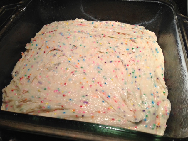 3. About a week or so ago, I made a batch of cake batter blondies. Solely for the purpose of eating sprinkles. And I needed something to put them in. Don’t get me wrong, I’m all for ordering an extra cup of sprinkles with my soft serve (EVERYONE should be doing that), but I didn’t want to run the risk of having Tyler come home to me on the floor in a sugar coma with empty sprinkles jars. Although, similar things have happened (namely with brownie batter and Nutella).