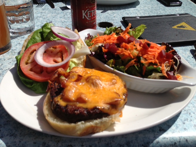 And we both got Bison burgers. My side HOUSE salad had beets and egg and a whole bunch of other delicious things that I immediately shovelled into my mouth.
