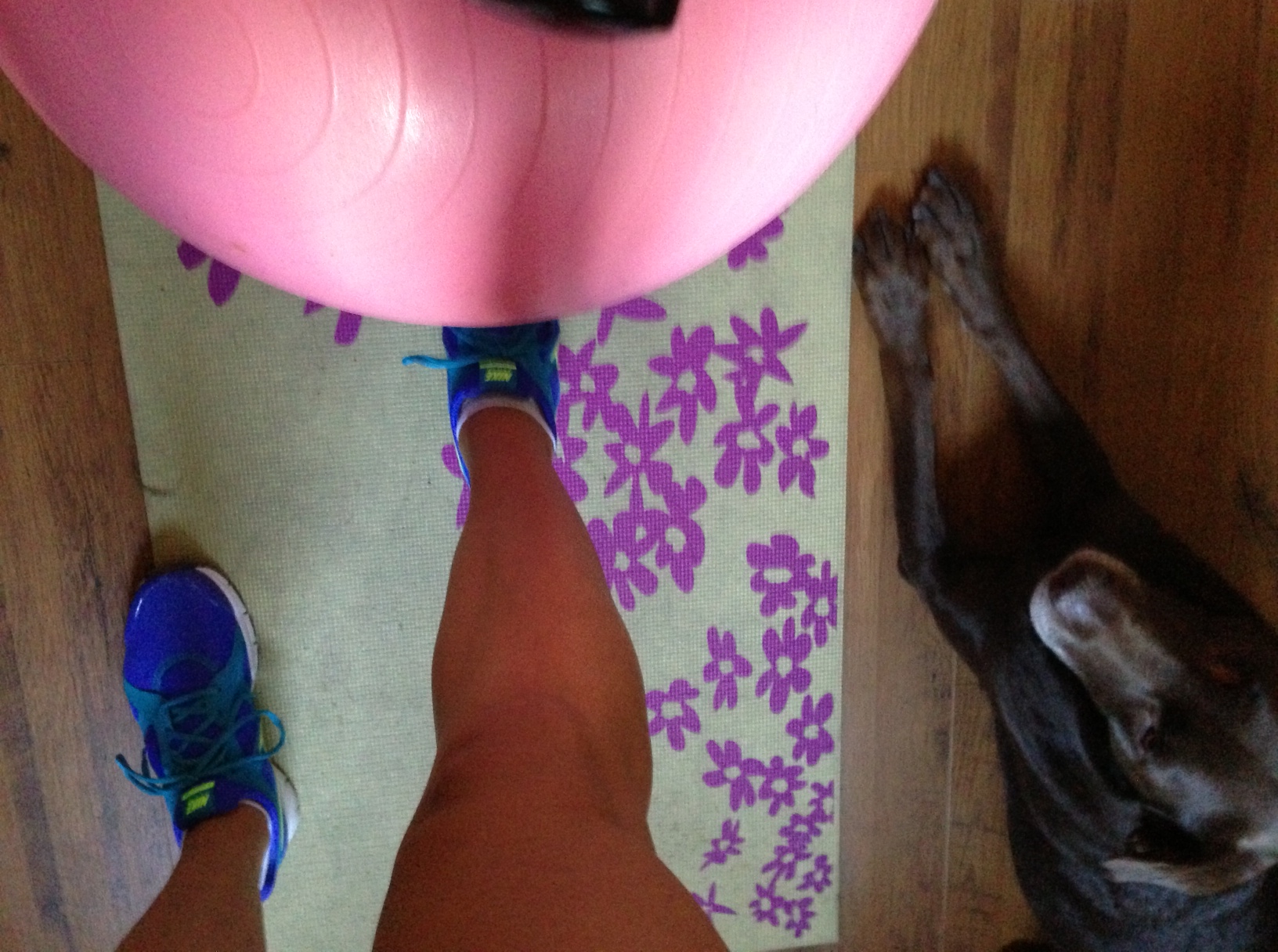 I FINALLY got a strength workout in. It has been almost two weeks since I did a legit strength workout, and I could almost immediately feel it. Heading to a yoga class afterwards really helped. Anyhoo, I opted for the workout at the bottom of this post. I chose to do each circuit 2x through. Layla joined in for most of it.