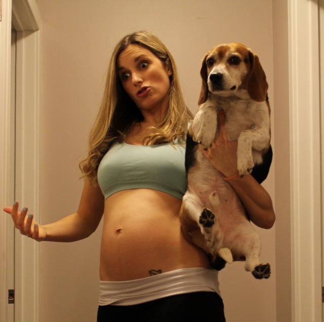 Your belly. Love it. And your dogs. Nice work on all the workouts and walks. We love wipes from costco, the costco brand. We like huggies diapers, they have a line so you know the diaper is wet. Hubby says it’s a must. Get nipple cream. Gripe water. Vaseline for bum if a little diaper rash..I dunno what else. 🙂