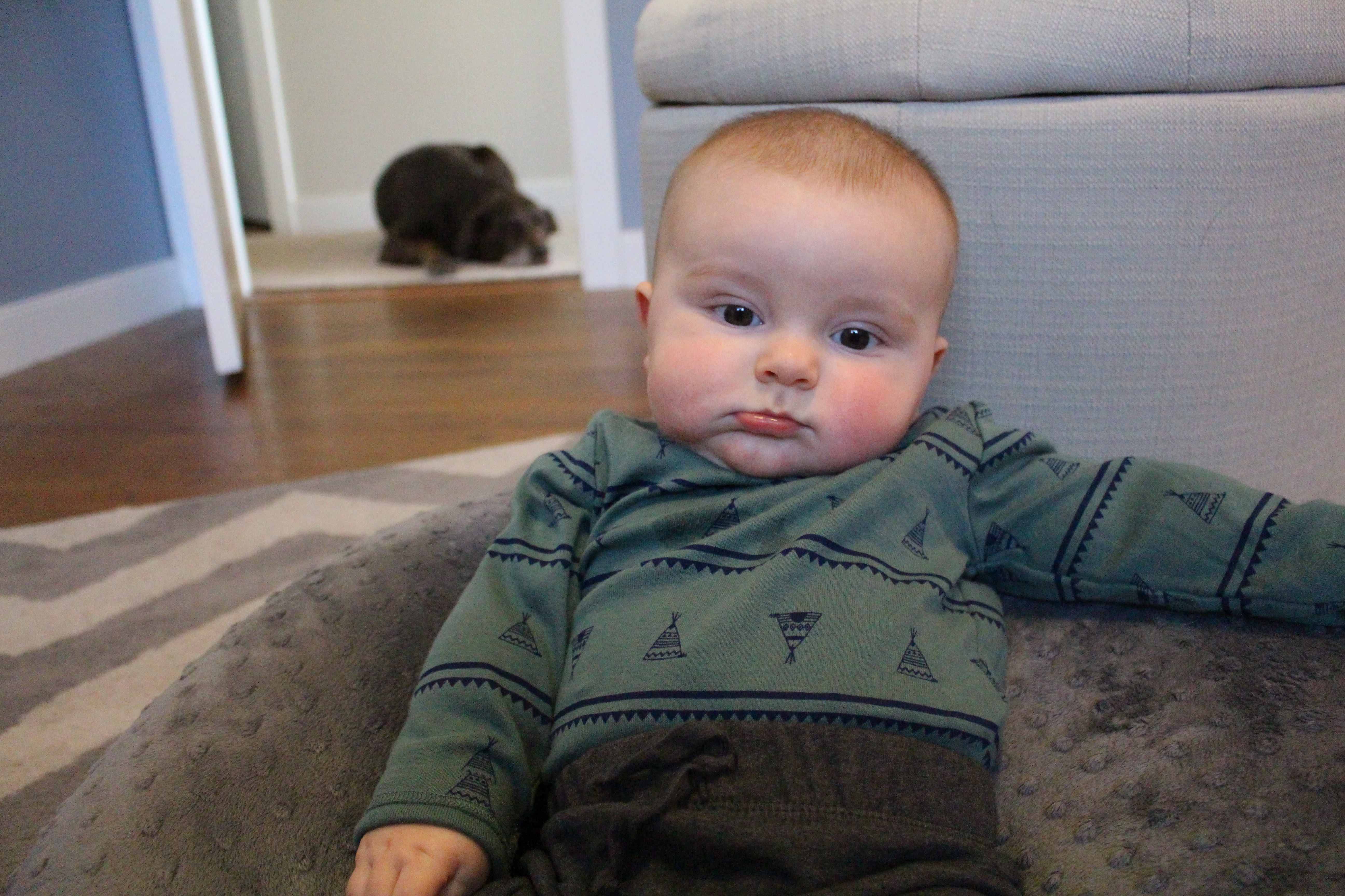 I swear he loves the dogs. Mostly Reggie, even though Reggie still gives zero craps about him. Layla is ALWAYS wherever Wes is. He’s started to grab for them and at first I was all AHHHH DOG HAIR IN HIS MOUTH. But then I realized it’s a lost cause. Especially when I find dog hair in his diapers. Whatever.