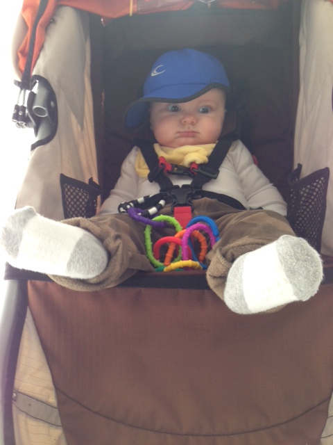 It was such a nice day out, that I decided to take Wes on another walk. I had to circle the block a few extra times since he was still sleeping, but it was then cut short when some douchehole neighbor decided to slam his trashcan around just as we were walking by. Insert wide awake and potentially grumpy/stunned looking baby here.