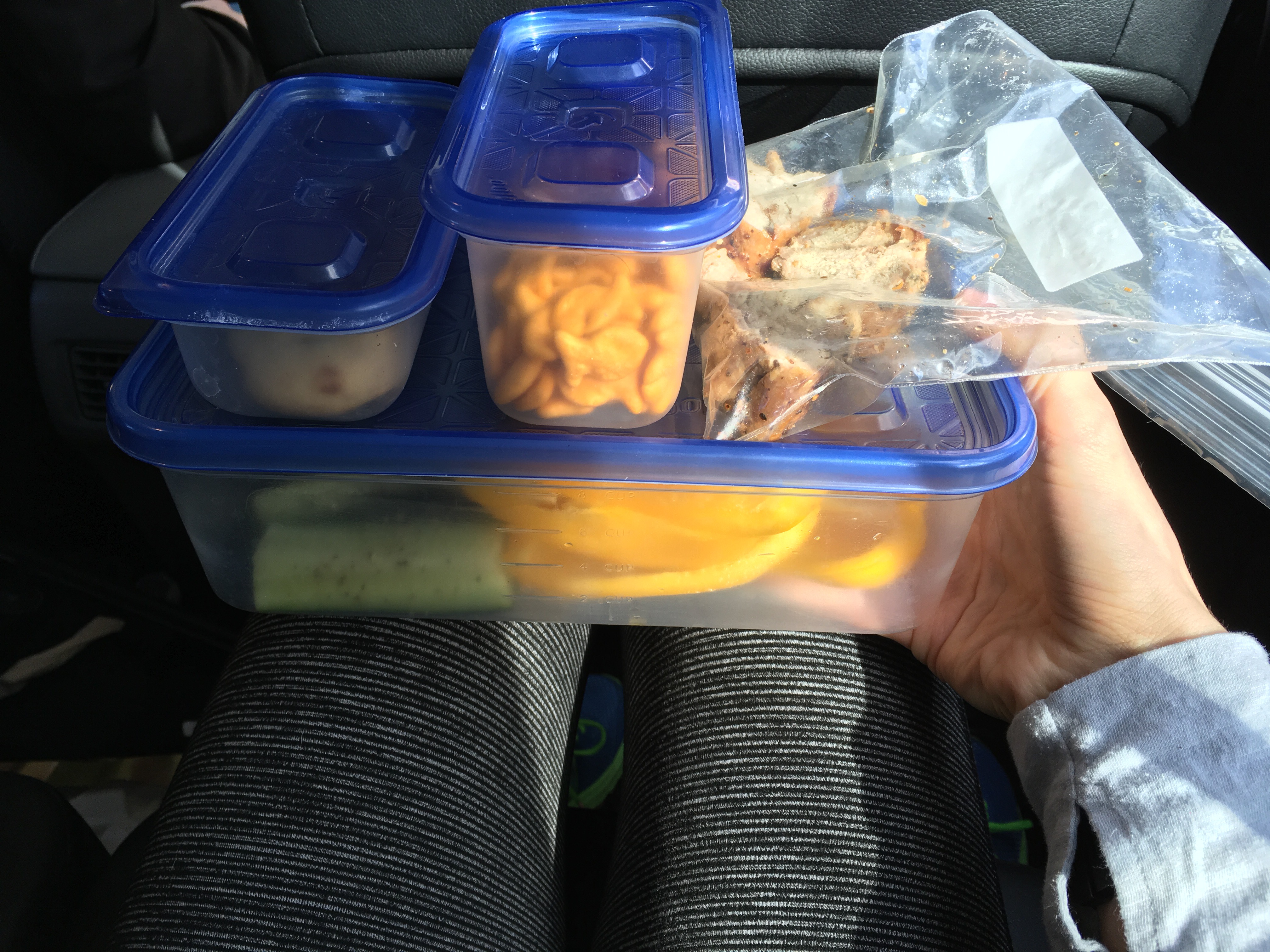 Monday: Typical morning. After Wes’s nap, we headed to Cross Iron and Tyler’s mom got him a bunch of new clothes. I packed my lunch for the ride!