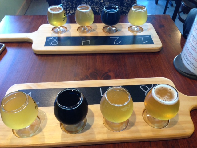 Of course, since I had never had any of their beers, a tasting flight was the obvious choice. They had 8 beers on tap (check out the link to their site as previously posted) and we could choose four for our flight. (only $5! Insert super excited/happy/drooly emoji here)