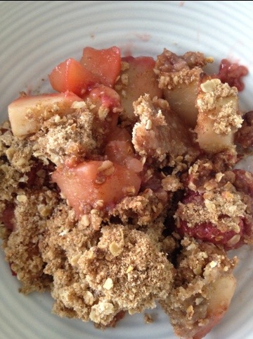 It was super simple. I just mixed the fruit with a few tbsp of honey then topped with a butter/brown sugar/oat/whole wheat flour/cinnamon mixture. Popped in the oven for 45 minutes and shizzam, dessert is ready