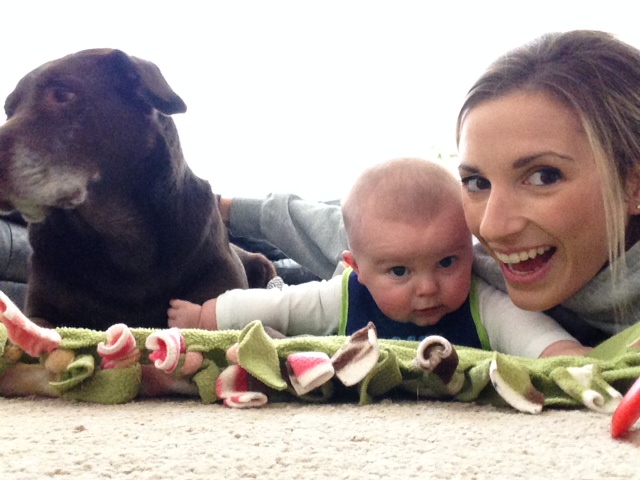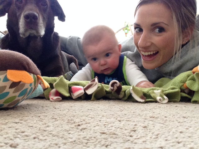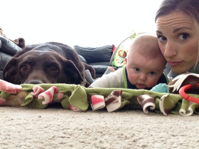 Wes and I hung out in our comfies upstairs while Tyler was working on the insulation in the basement. We are getting better at tummy time! Layla included.