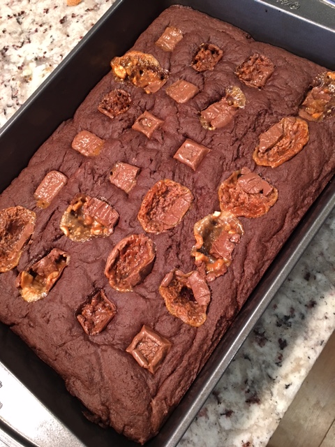 I made some brownies with a few leftover candy bars. We bought tons of full sized candy bars and only had about a half a dozen trick or treaters. I’m not complaining- most of the candy is stuff I like.
