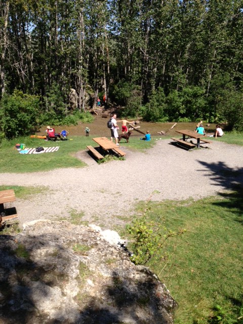 The starting spot has a bunch of picnic tables and a ton of young families were there with their human babies. Fur babies are better, so we brought them.