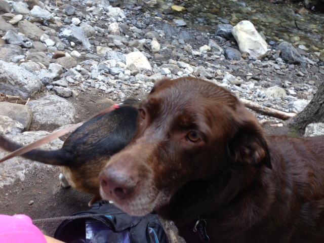 When we got to the end of the trail (I didn’t think we would be able to get to the end because of all the flood debris) we sat to eat. Layla had a few dunks in the water.