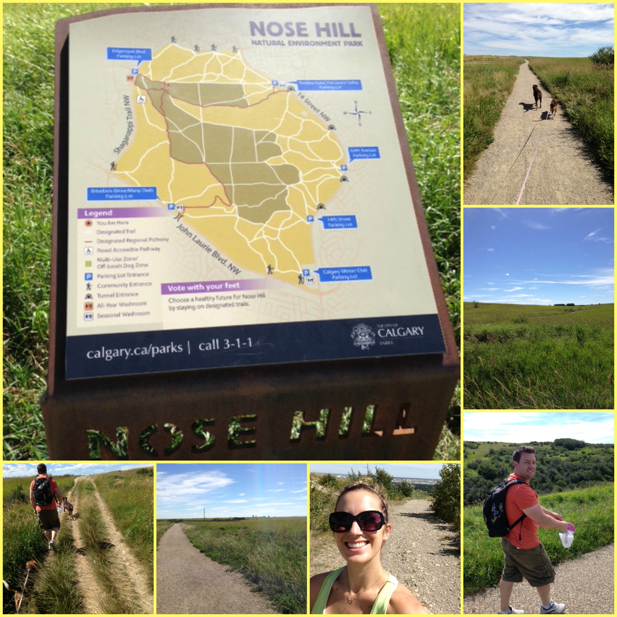 We ventured over to Nose Hill Park to stretch our legs and exhaust the puppies. It worked. The sun was super hot and we guessed we did about 3ish miles from the various paths we chose.