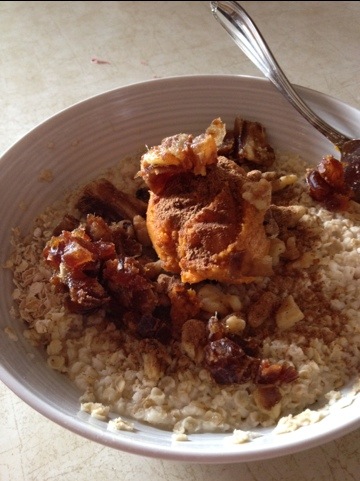 Dinner was a bowl of oats with walnuts, chopped medjool dates, a heap of pumpkin ad pumpkin pie spice.