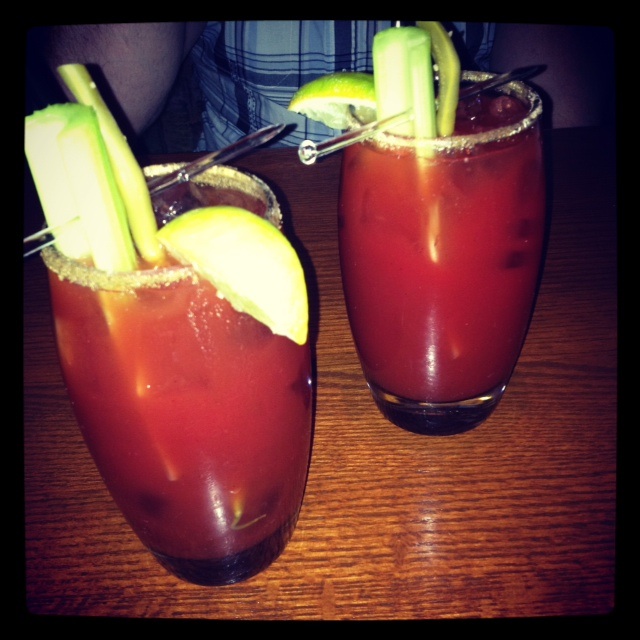 We started off with a couple of Caesar’s (to you American folk, it’s essentially a Bloody Mary, except it’s made with clamato juice rather than tomato juice). Tyler’s is extra spicy, mine is extra not. But you can’t tell the difference.