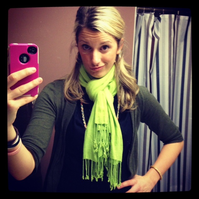 My expression was intended to imply ‘hey, look at this bangin’ green outfit.’ When really it says, ‘check out my disastrous roots.’ Whatever, I’m fixing that problem on Monday.