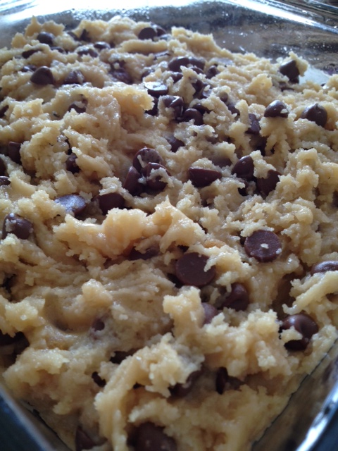 I only put about 2 tbsp of the chocolatey goodness on the stack, and they tasted like CAKE. yum.