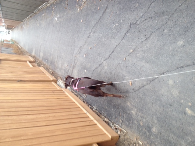 I have to keep the dang dog on her leash because she would run into the water and never come out. Or she’d run into the woods. Or somewhere -anywhere- that I couldn’t her back. All the other dogs on just about every walk we take are off leash. You’d think she’d get the hint that maybe she should be a little bit more obedient (Insert giant HA! from me)