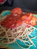 Dinner was homemade sauce and turkey meatballs with whole wheat pasta.