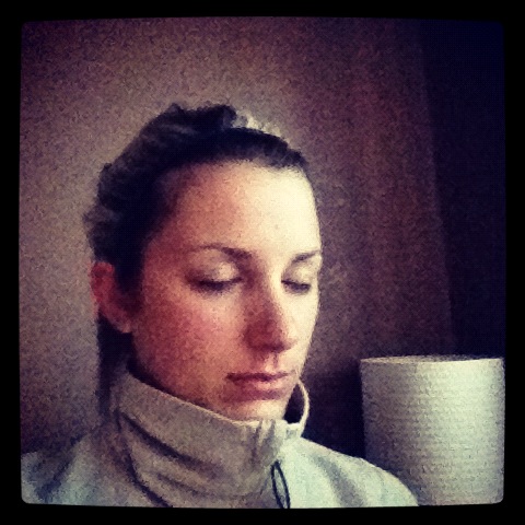 We watched a movie after dinner, and a tummyache kicked in. Nothing to do with dinner, folks. That’s all I’m saying. It’s not cold in here, but I watched the movie like this