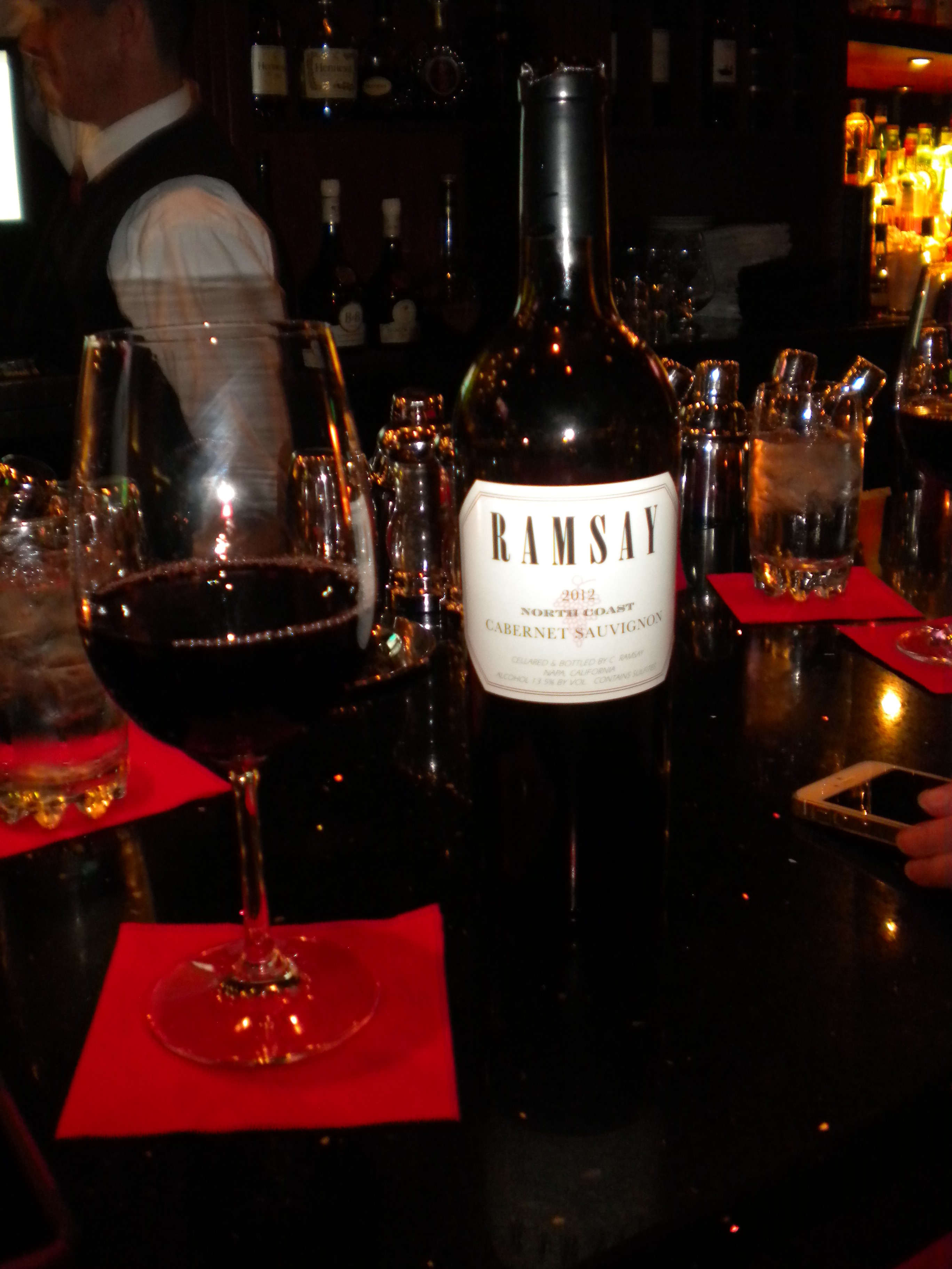 We also managed to down another bottle. The second was Ramsay Cabernet Sauvignon. This was another good drinking wine that we enjoyed all too easily with conversation at the bar.