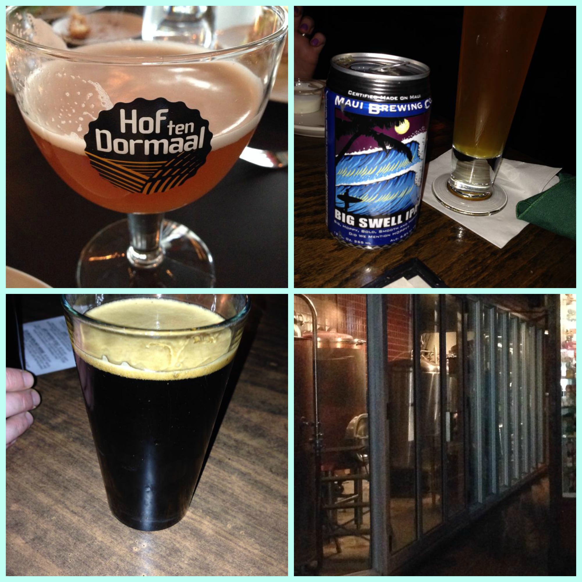 So I went to Philadelphia again for the weekend and had some delicious brews and eats. Before going there, however, I had a strong IPA by Maui brewing company called Big Swell. Lots of hop flavor on this one. Good stuff for a Hawaiian made beer. In Philadelphia, my wife and I went to this restaurant with her former college roommate called Sbraga ownedand operated by the Top Chef. I had a Hof Dormaal there with my meal and it was fantastic. It is a strong Belgian blonde ale with hints of banana, clove, and other spices throughout that went perfectly with all of my tasting dishes. We then left and went to Nodding Head brew pub. I got a “Just Annuder Stout” which I wasn’t too impressed with but still decent enough to drink the whole pint. It was more dark chocolate/coffee flavor than I expected but with the addition of lactose sugar (not dissolvable by beer yeast), it was more than tolerable and had a creamy finish. The interesting thing about this brew pub is it is one of the smallest in Pennsylvania, yielding only 7 barrels of beer per year. Helps keep costs and alcohol taxes down I guess! I took a pic of their brewery equipment which I will include with this. What you see is exactly how much equipment they have.